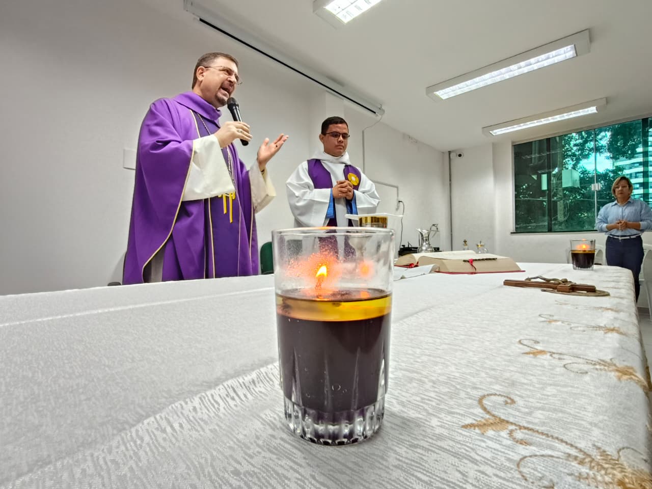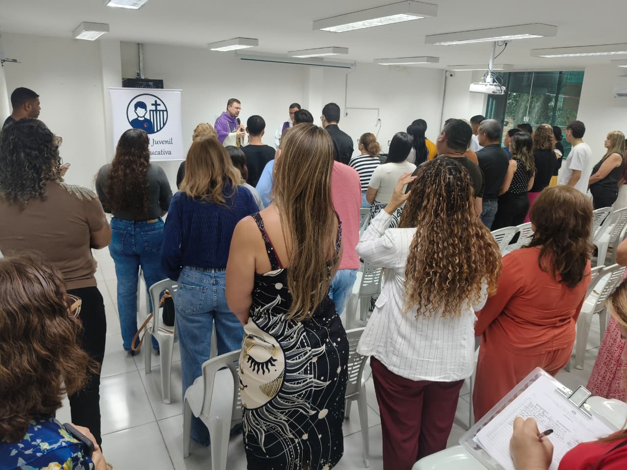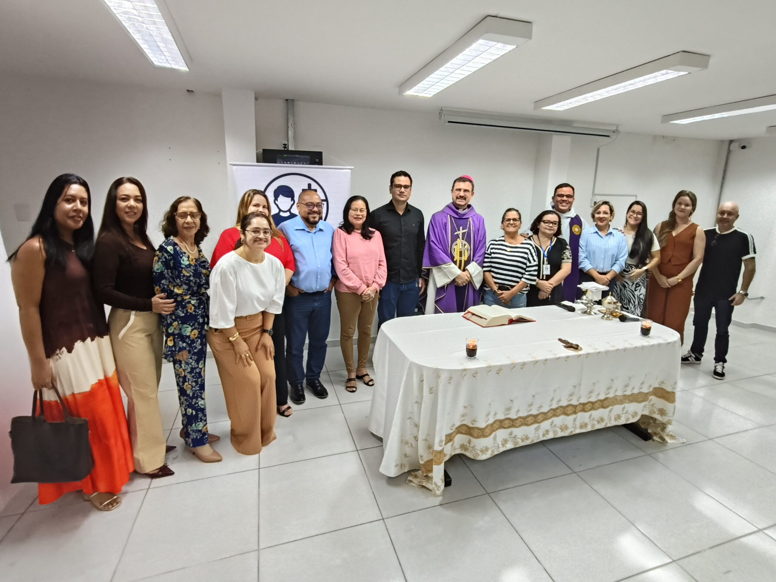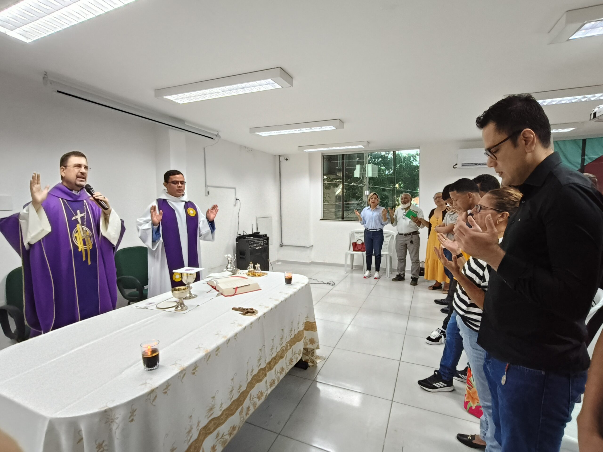 Na manhã da sexta-feira (20), a Pastoral Juvenil Socioeducativa da Arquidiocese de Belém marcou a retomada das atividades religiosas na socioeducação com a celebração de uma missa na sede administrativa da Fundação de Atendimento Socioeducativo do Pará (Fasepa). O evento é uma iniciativa da Diretoria de Desenvolvimento da Política Socioeducativa (DDPS) e inaugura mais um ano da agenda religiosa da Arquidiocese nas Unidades de Atendimento Socioeducativo (UASE), levando aos servidores, socioeducandos e seus familiares palavras de fé e esperança para a construção de novos caminhos, fortalecendo a resiliência e a crença na transformação pessoal.