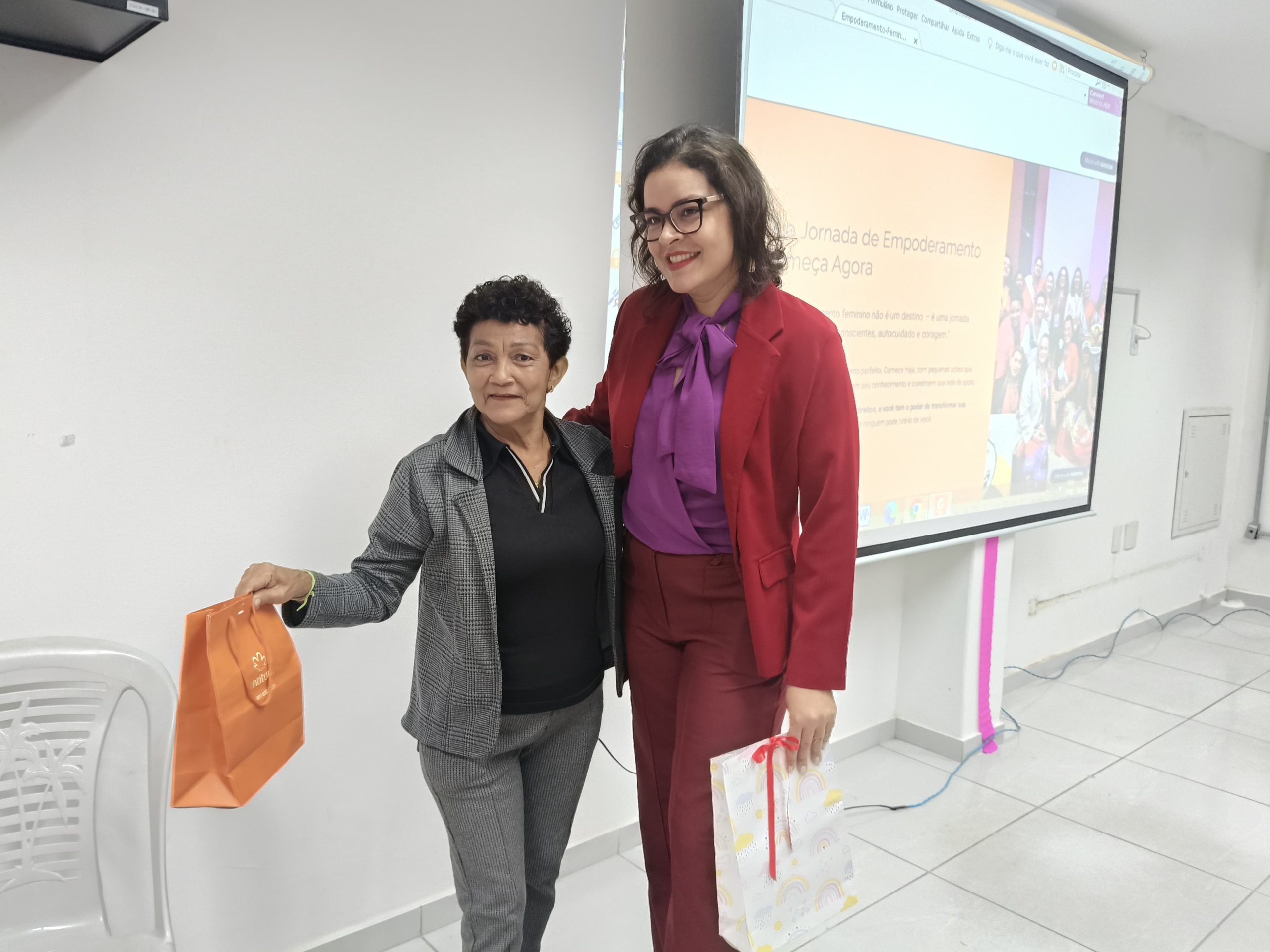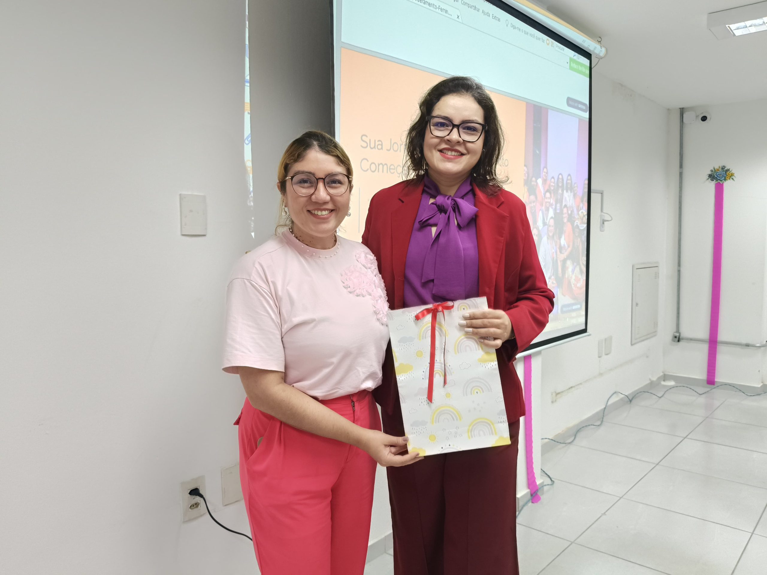 Encerrando a programação, foi oferecido um lanche especial às participantes, além da entrega de brindes em homenagem à data comemorativa, proporcionando um momento de celebração, acolhimento e reconhecimento às mulheres que atuam na socioeducação.