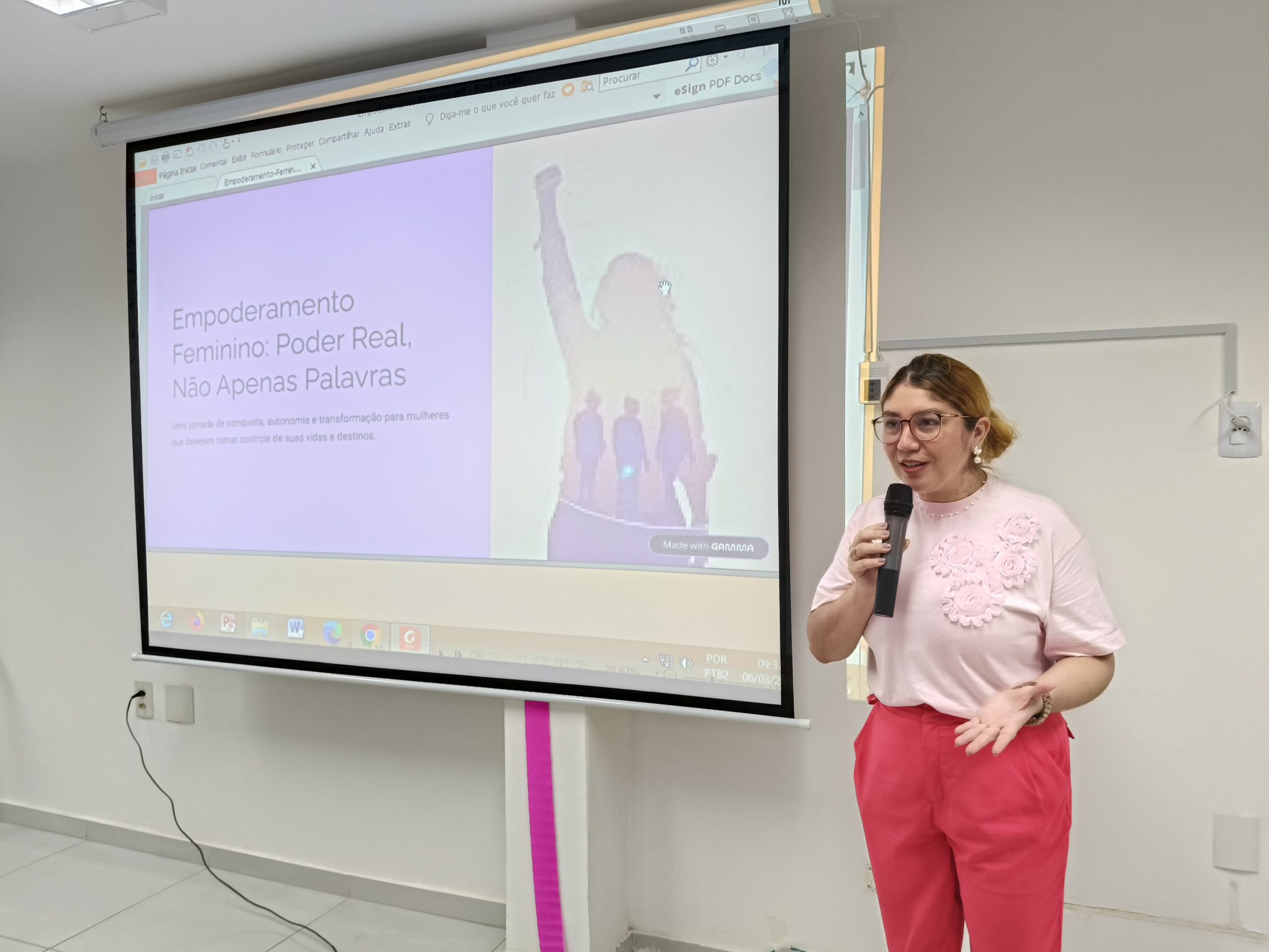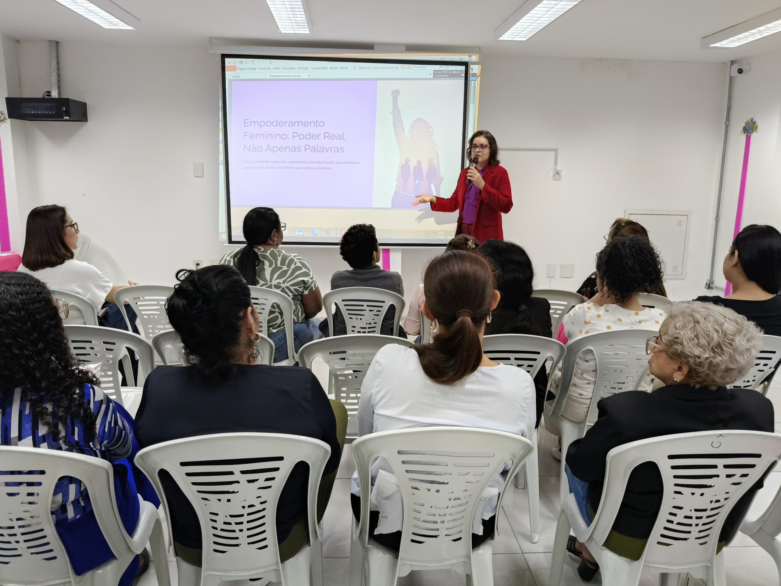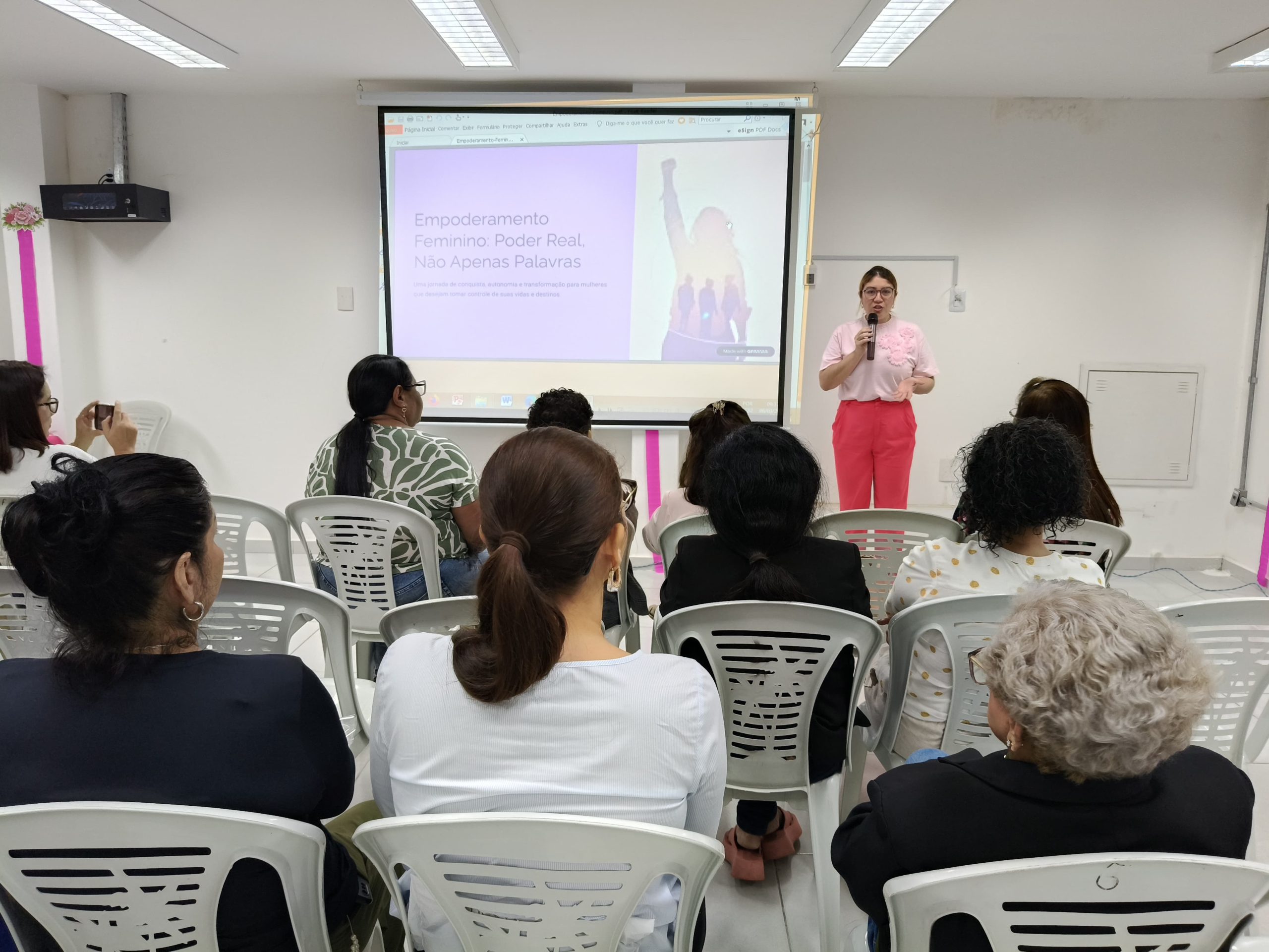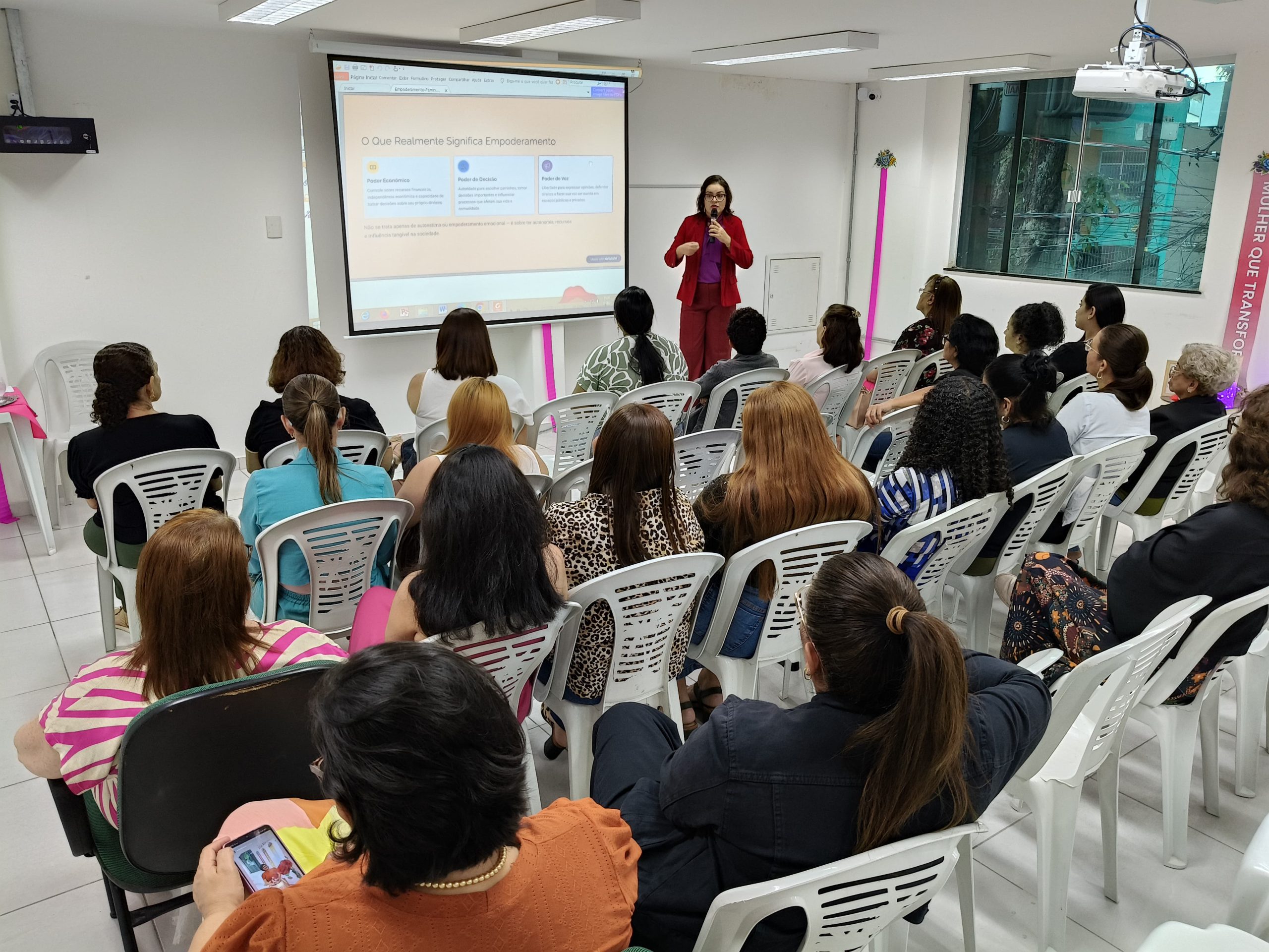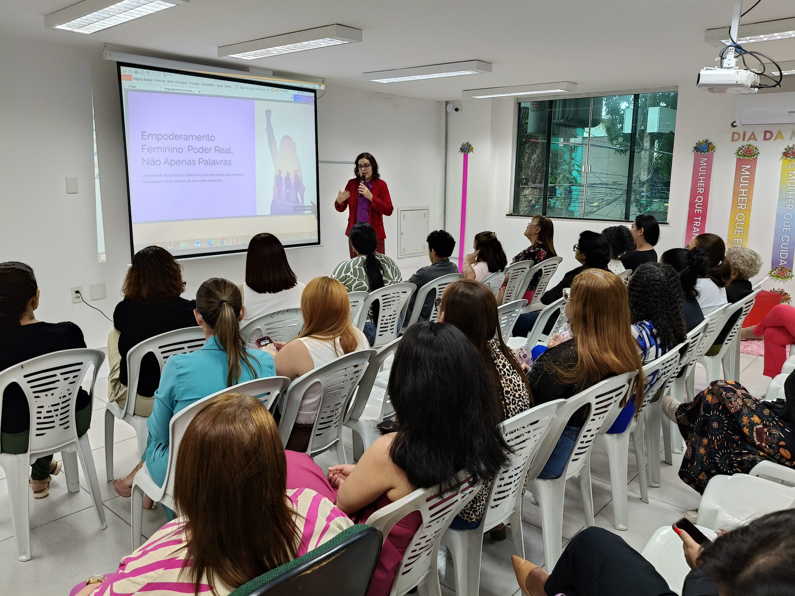 A programação contou com atividade formativa realizada em parceria com a Secretaria de Estado das Mulheres (SEMU), incluindo dinâmicas, oficinas e uma palestra sobre o empoderamento feminino diante dos desafios da atualidade, destacando a importância de fortalecer e valorizar as conquistas históricas das mulheres. A palestra foi conduzida pela advogada, especialista em direito previdenciário e integrante do Conselho Estadual dos Direitos das Mulheres, Monique Andrade, de forma clara, acessível e envolvente, estimulando o diálogo sobre direitos, protagonismo feminino e valorização das mulheres no ambiente de trabalho.