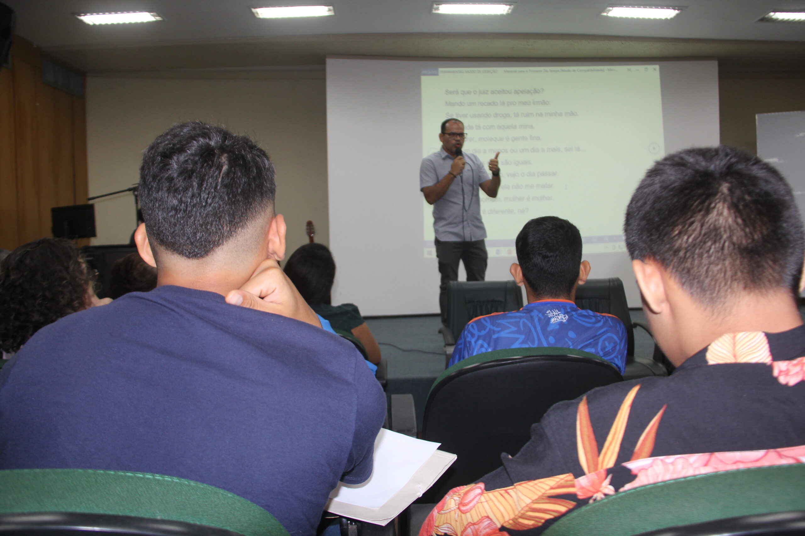 Jovens privados de liberdade participam de aula preparatória para a aplicação do Exame Nacional do Ensino Médio (Enem PPL) 2023, nesta sexta-feira (1) e na próxima quinta-feira (7). As aulas estão sendo realizadas na Escola de Governança Pública do Estado do Pará (EGPA), em parceria com a Fundação de Atendimento Socioeducativo do Pará (Fasepa); Secretaria de Educação (Seduc) e Instituto Ambient, organização social vinculada ao Projeto Escrevendo Reescrevendo Nossa História (Pernoh), de iniciativa do Ministério Público do Trabalho e do Tribunal de Justiça do Pará (TJPA), com o objetivo de motivar os estudantes e preparar qualitativamente para o processo de aprendizagem em busca de resultados positivos na hora da prova.